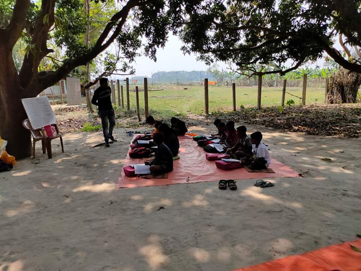 It's a ritual of the village that when a ceremony is held every children gathers there...and it happens...afterall happyness is everything....yet the numbers are not bad on this day.. Many didn't come...it's natural.. because today they celebrate a programme at their home..but the rest have come to the class and fell in love...that is the love that we want..we are giving what is inside us..but it is not enough...so if you have some new teaching skills which you want to spread among them then please come once in a month and spent the whole day with us...and give your knowledge to them along with us..thank you...