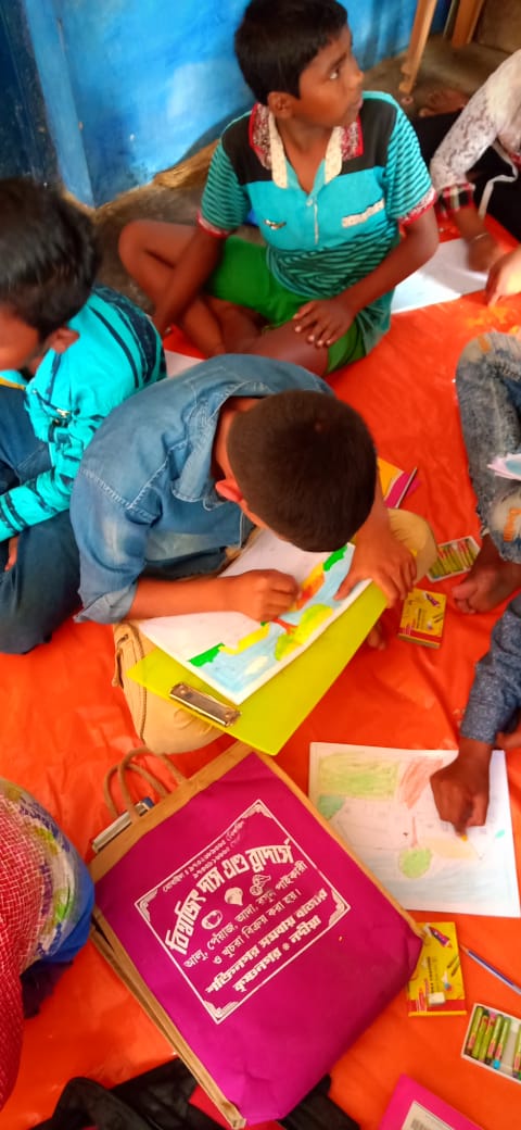 AYE RE VAI SOBAI AYE..... The Bhramar's Pathshala has started. Where they will learn with smile. Gradually the process of giving extra curricular activities will start. So today notebooks, drawing books, pencils, erasers, sharpeners and books were given (book bank).. It is accompanied by a joyous meal every week. It's name is Ullas Bhojan.. Today there was an arrangement of meat and rice as lunch was run in favor of Krishnanagar-1's former Joint BDO Mr. Tapas Kumar Gain.. When they saw some dessert item, they cried out with joy by saying that "please give us some more.. "This is the cause of our energy.. You can also come forward. Our school will run every Sunday along with Ullas Bhojan..