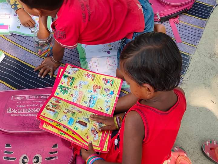 It's a ritual of the village that when a ceremony is held every children gathers there...and it happens...afterall happyness is everything....yet the numbers are not bad on this day.. Many didn't come...it's natural.. because today they celebrate a programme at their home..but the rest have come to the class and fell in love...that is the love that we want..we are giving what is inside us..but it is not enough...so if you have some new teaching skills which you want to spread among them then please come once in a month and spent the whole day with us...and give your knowledge to them along with us..thank you...