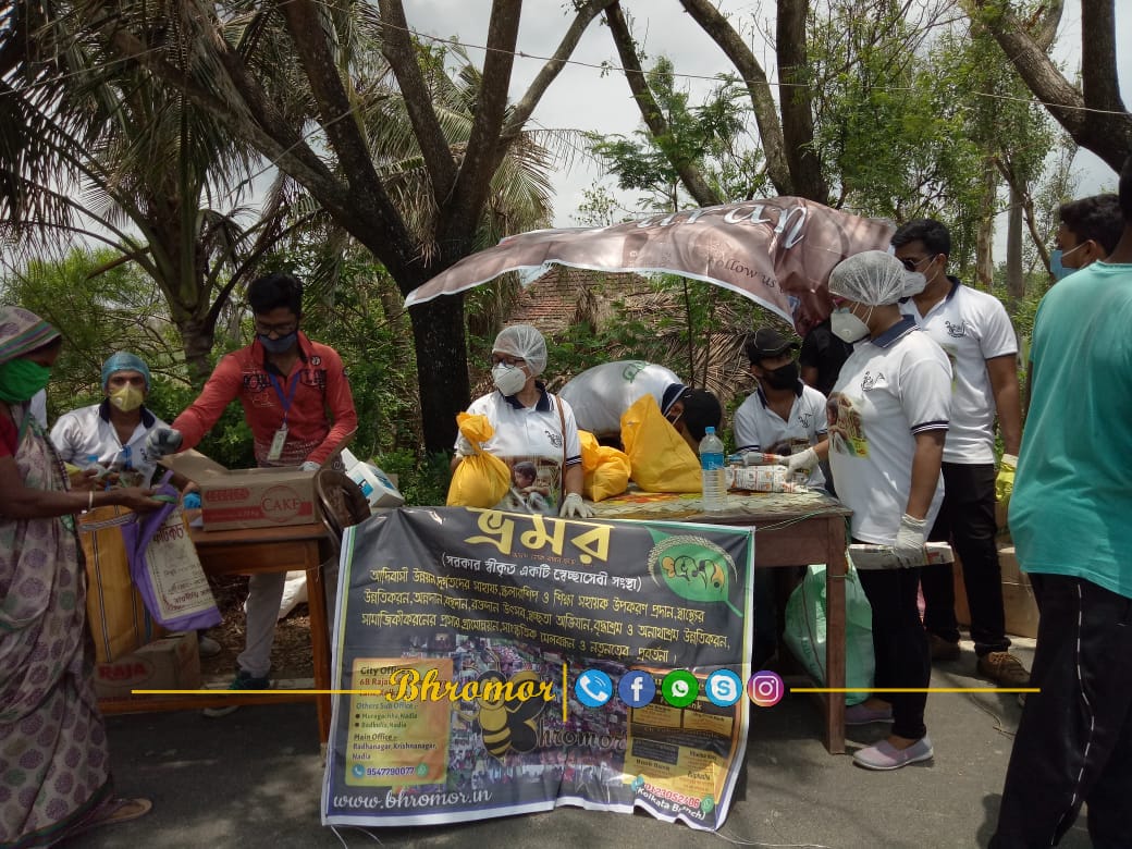 The horrifying cyclone Amphan has wreaked havoc all across West Bengal. Numerous people have been affected by it. A catastrophe of this scale has never been witnessed before. Thousands of trees were uprooted, and power and water supply was interrupted in the state capital Kolkata. Many in the state have lost their entire homes as well. For that reason our BHROMOR always ready for man. So, in this time BHROMOR got another large project about this Amphan relief. It's about 250 families of Nandakumar area, RAYDIGHI. We provided some foods, masks, medical kit etc to the people by maintaining the proper sanitization and social distance. We all enjoy together. We hope that every people's felicity are always with BHROMOR.